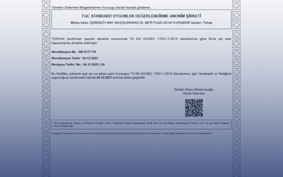 TS EN ISO/IEC 17021-1:2015 Standardına Göre Kurumumuz Akredite Edilmiştir